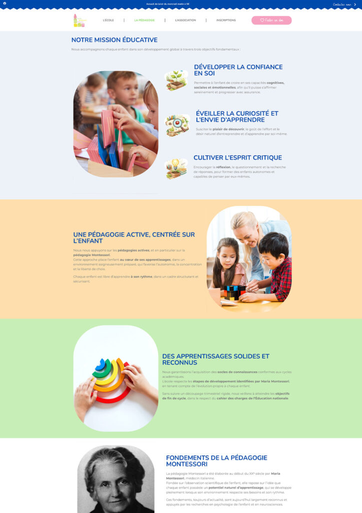 Une présence en ligne professionnelle et cohérente avec les valeurs Montessori