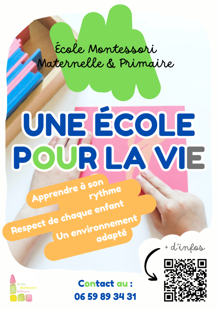 L’École Montessori de Béthune est une association qui accueille des enfants en maternelle et en primaire, en s’appuyant sur les principes de la pédagogie Montessori.